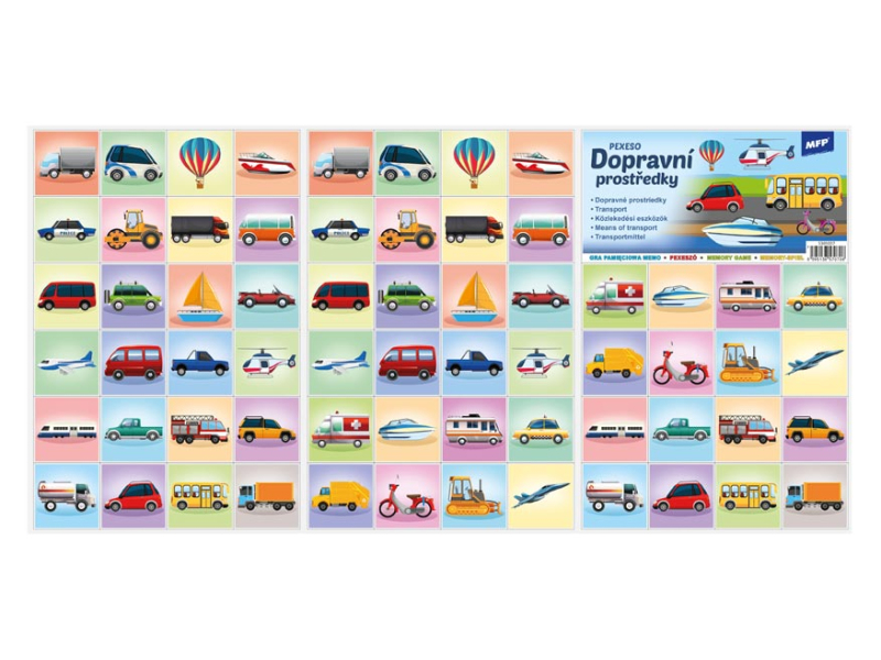 Pexeso je populárna detská hra, ktorá nikdy neomrzí a zapojiť sa môžu i dospelí. Vedeli ste, že pexeso vzniklo spojením českých slov PEKelně SE SOustřeď? Je to výborná učebná pomôcka pre deti a rodičov. Táto hra ich zabaví na dlhé hodiny. PEXESO sa skladá z troch hárkov A4, na ktorých nájdete 64 kartičiek. NÁVOD NA HRU POEXESO Pexeso môžu hrať najmenej dvaja hráči. Všetky rozstrihané kartičky zamiešame a rozložíme obrázkami dole do štvorca 8x8 kartičiek. Nikto sa nesmie pozerať na obrázky. Hráči si určia poradie v hre. Hráč obráti dve ľubovoľné kartičky tak, aby si aj ostatní spoluhráči mohli obrázky a ich umiestnenie zapamätať. Ak kartičky neobsahujú rovnaký obrázok, vrátia ich na pôvodné miesto opäť obrázkami dole. Pokračuje ďalší hráč, ktorý je na rade. Ak objaví rovnaké obrázky, získava bod a obe kartičky vyradí z hry. Pokračuje do tej chvíle, kým neobráti dva rozdielne obrázky. Vyhráva hráč, ktorý získa viac bodov. PAPIER: kriedový matný 350 g + lamino lesk 1/1 VEĽKOSŤ HRACÍCH KARIET: 51X51 mm VAROVANIE: Nevhodné pre deti do 3 rokov. Nebezpečenstvo prehltnutia alebo vdýchnutia malých častí. Uvedená cena je za 1 súpravu.