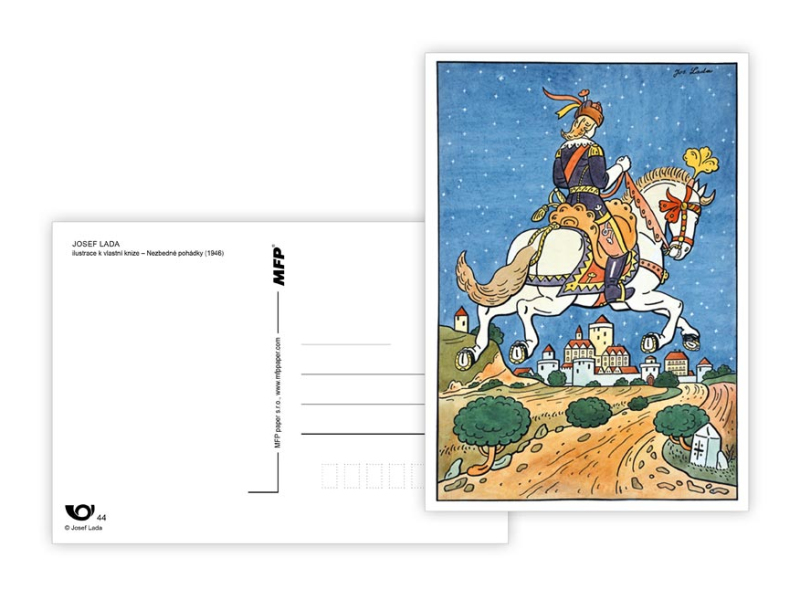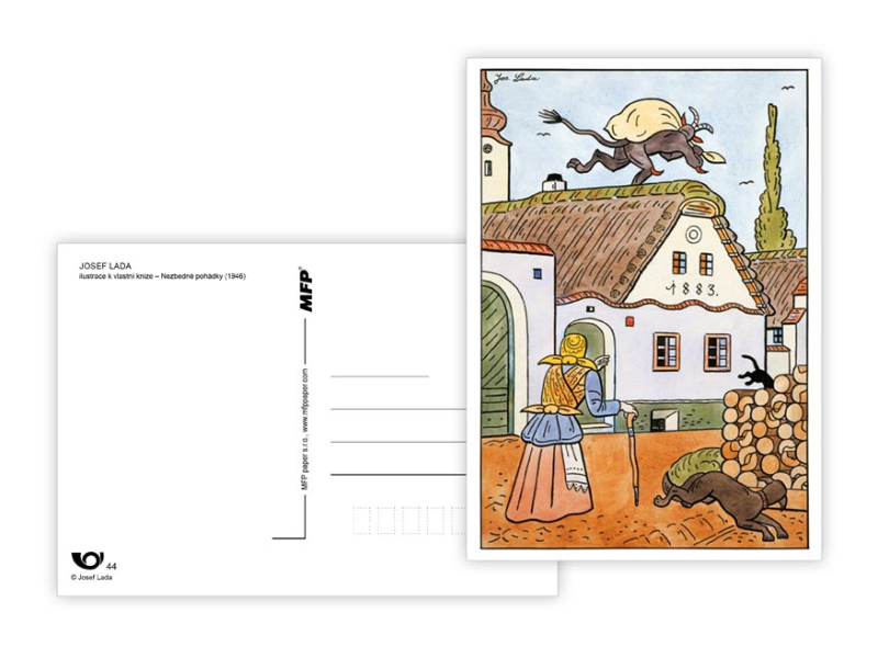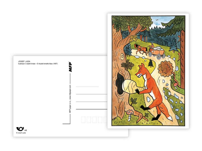Pohľadnica s obrázkami Jozefa Ladu. Zoznam zdrojov: 1.Ilustrácie z knihy O prefíkanej kmotre líške 1957 2. Ilustrácie z knihy Nezbedné rozprávky 1946 3. Ilustrácie z knihy Čudáci a hastrmani 4. Ilustrácie z knihy Český Honza 1940 5. Ilustrácie z knihy Nezbedné rozprávky 1946 6. Ilustrácie z knihy Mikeš 1957 Pohľadnice sú bez textu na zadnej strane. Papier : pohľadnicový kartón 300 g Uvedená cena je za 1 ks.