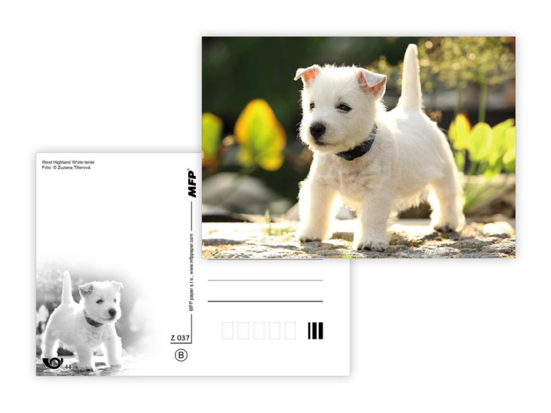 Pohľadnica so zvieracími motívmi. Na pohľadniciach nájdete obrázky psov a šteniat rôznych rás. Dodávame v mixe podľa skladových zásob. Pohľadnice sú bez textu na zadnej strane. Uvedená cena je za 1 ks Rozmery: A6 10,5 x 14,8 cm Papier: pohľadnicový kartón 300 g Povrchová úprava: UV lak Text: 0/6