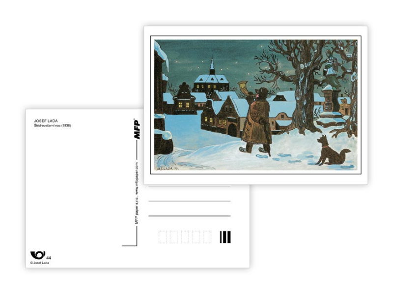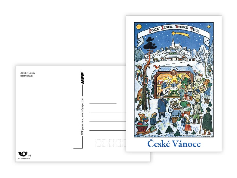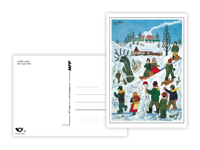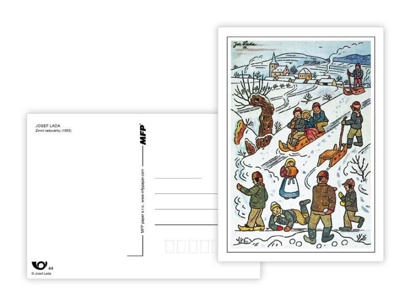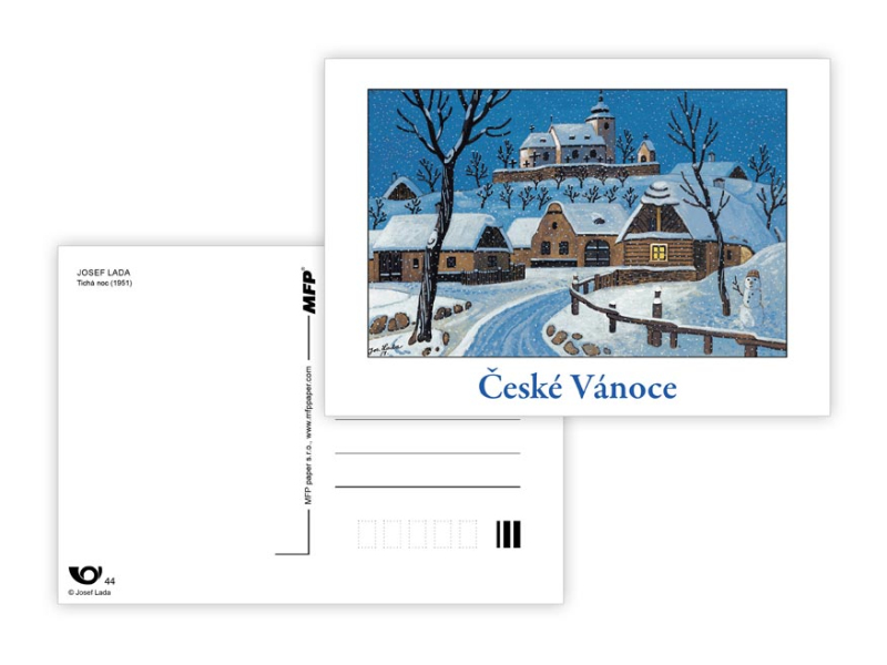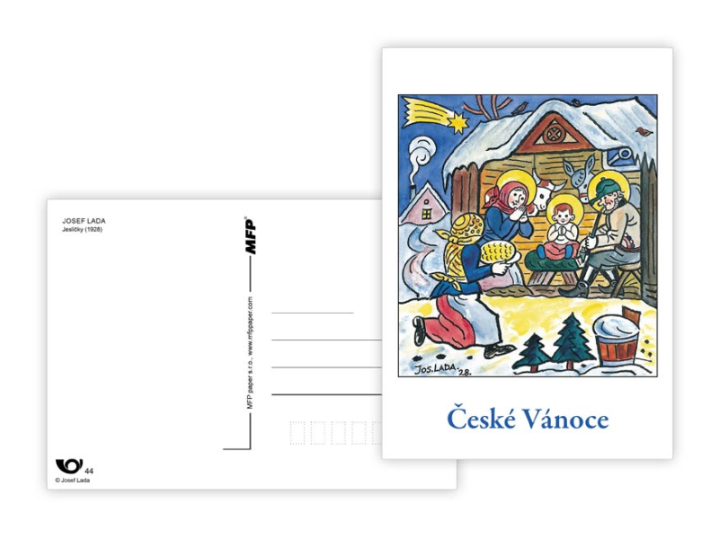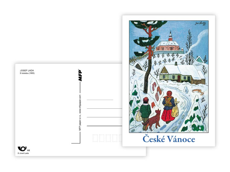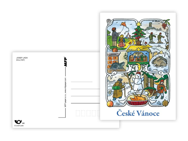 V této sadě pohledů najdete 18 motivů s nejznámějšími Vánočními obrázky Jozefa Ladu. Malíř Jozef Lada Vás ve svých obrázcích zavede do zasněžených Hrusic, na návsi potkáme ponocného, u potoka sáňkují děti a nesmí chybět ani Ladův tradiční betlém. Na zadní straně těchto pohledu není předtištěný text s přáním. Rozměr: A6 10,5 x 14,8 cm Papier: pohľadnicový kartón 300 g Text: 0/6 Uvedená cena je za 1ks, 50 ks je zatavených do fólie.