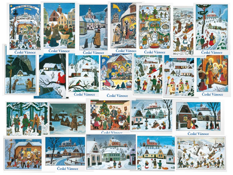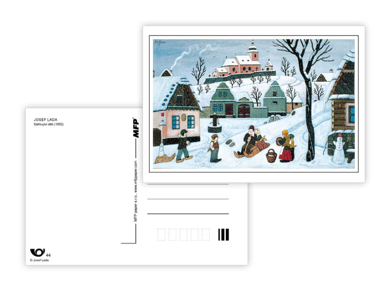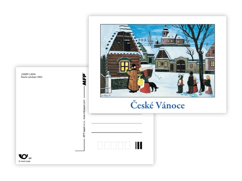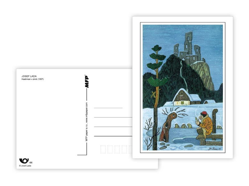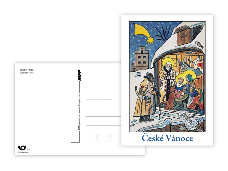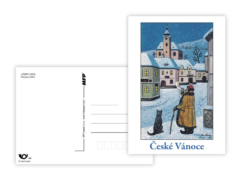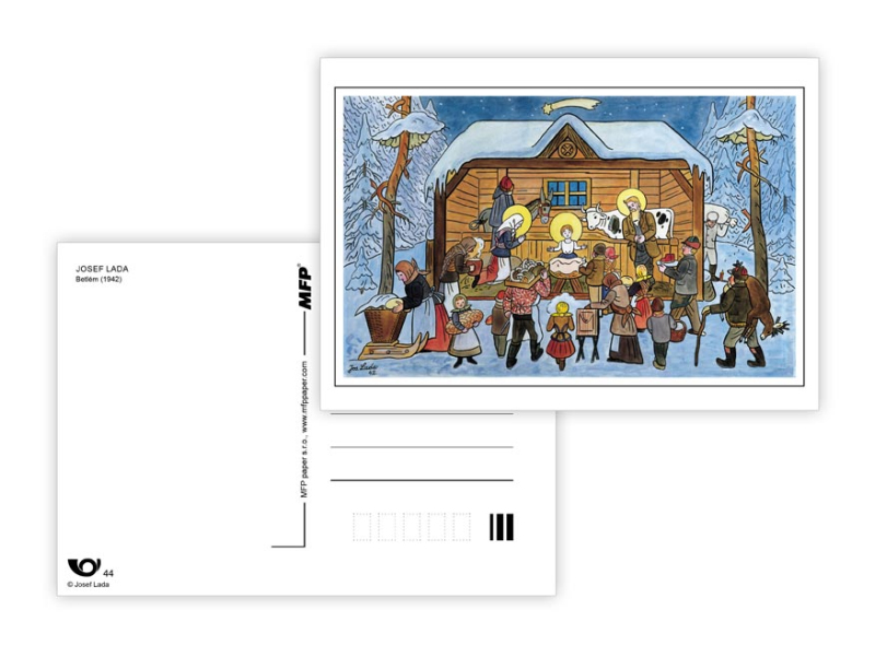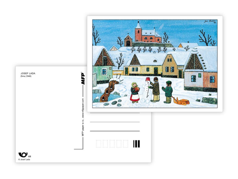 V této sadě pohledů najdete 18 motivů s nejznámějšími Vánočními obrázky Jozefa Ladu. Malíř Jozef Lada Vás ve svých obrázcích zavede do zasněžených Hrusic, na návsi potkáme ponocného, u potoka sáňkují děti a nesmí chybět ani Ladův tradiční betlém. Na zadní straně těchto pohledu není předtištěný text s přáním. Rozměr: A6 10,5 x 14,8 cm Papier: pohľadnicový kartón 300 g Text: 0/6 Uvedená cena je za 1ks, 50 ks je zatavených do fólie.