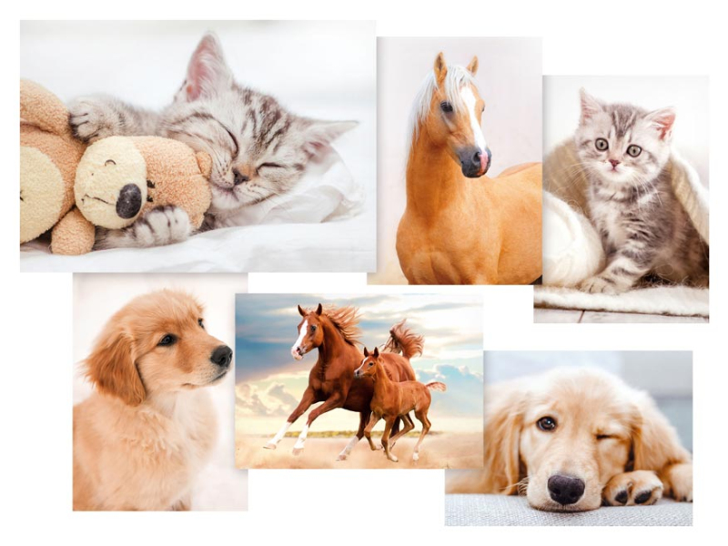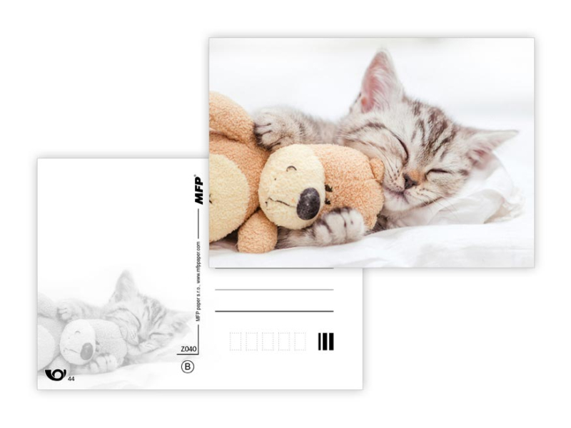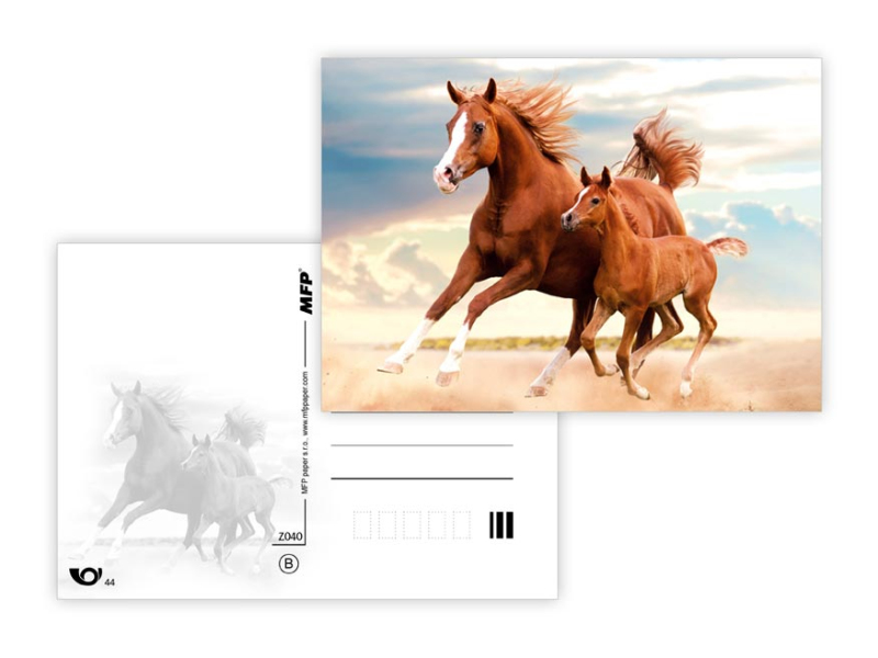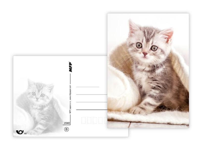 Pohlednice s motivem zvířat. Dodáváme v mixu podle skladové zásoby. Pohlednice jsou bez textu na zadní straně. Papír: pohlednicový karton 240 g Povrchová úprava: UV lak Text: bez textu Uvedená cena je za 1 ks.