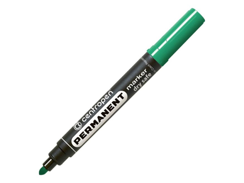 Permanentný popisovač zelený na liehovej báze. Píše na väčšinu povrchov. Vhodný na písanie na drevo, papier, plast, betón, kameň, guma, kov, sklo. Odolá oteru, vode a poveternostným vplyvom. Hrot: okrúhly Šírka stopy: 2,5 mm Uvedená cena je za 1 ks.