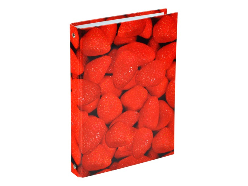 Krúžkový zakladač s motívom jahôd veľkosti A5. Praktický na ukladanie dôležitých dokumentov a dokladov. Dosky sú vyrobené z laminátu. Hrebeň je vybavený 4 krúžkami. Motív: jahody Uvedená cena je za 1 kus.