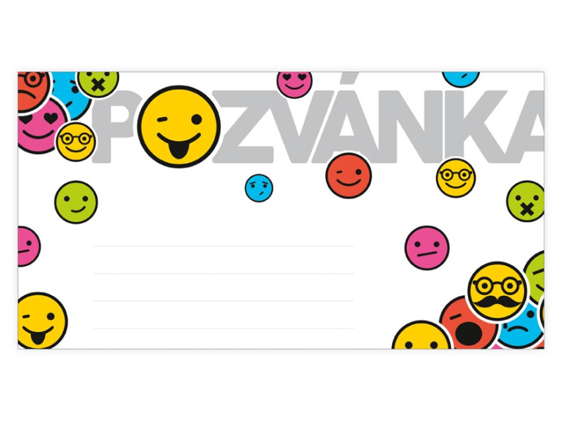 Pozvánka na narodeninovú oslavu a párty so smajlíkmi. – Budeš mať narodeninovú párty a chceš pozvať kamarátov? Pošli im pozvánku na oslavu! Na pozvánke sú riadky, kde si vypíšeš napr. meno, dátum a čas oslavy, miesto oslavy alebo menší odkaz. Uvedená cena je za 10 ks.