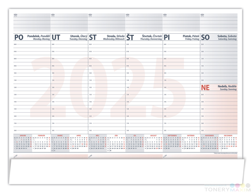 Stolová pracovná podložka s týždenným plánovaním a prehľadným kalendáriom na celý aktuálny rok. Praktická pomôcka, ktorá chráni váš stôl a zároveň nahrádza kalendár, či poskytuje priestor na poznámky.