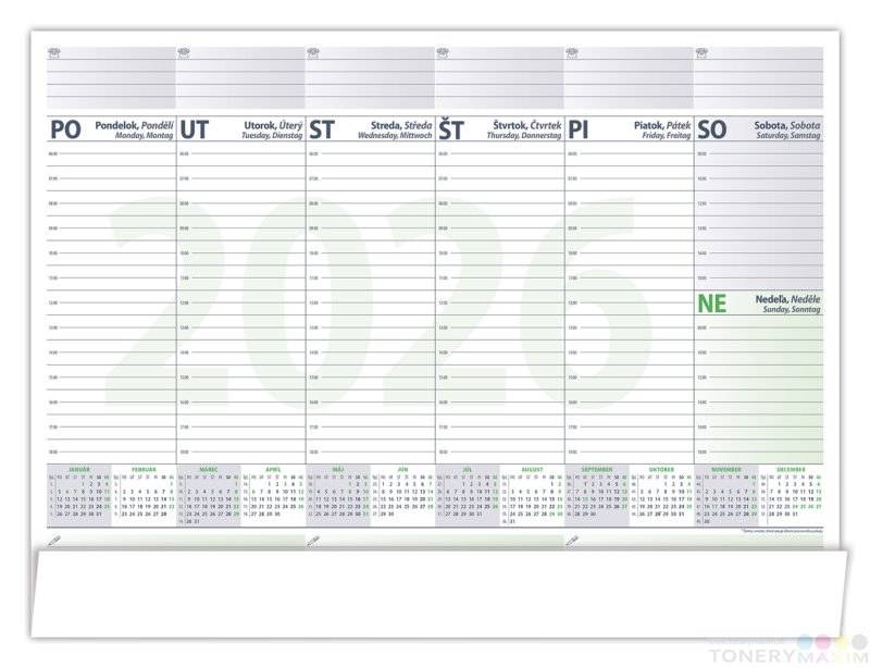 Stolová pracovná podložka s týždenným plánovaním a prehľadným kalendáriom na celý aktuálny rok. Praktická pomôcka, ktorá chráni váš stôl a zároveň nahrádza kalendár, či poskytuje priestor na poznámky.