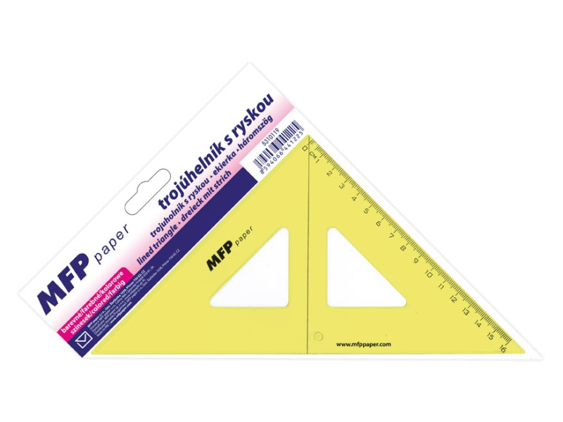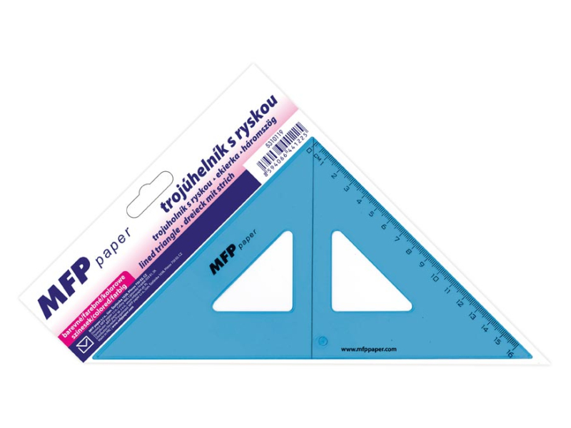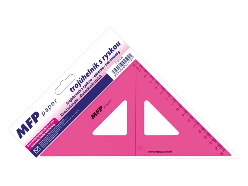 Školské, plastové pravítko pravouhlý trojuholník s ryskou s dĺžkou 16 cm - pomocník pri geometrii. Pravítko zviera uhly 45 ° / 90 ° / 45 °. Farba: ružová, modrá, zelená, žltá Pravítko je zdravotne nezávadné a neobsahuje ftaláty. Dodávame v plastovom puzdre so závesom. Dodávame v mixe 4 ks podľa skladovej zásoby. Uvedená cena je za 1 ks.