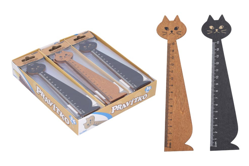 Školské drevené pravítko v tvare mačky s dĺžkou 15 cm, v 2 farbách. Nepostrádateľný pomocník pri geometrii ale aj pri bežnom písaní napríklad k podtrhávaniu a oddeľovaniu textu. Každému školákovi by nemalo chýbať. Materiál: drevo Farba: čierna, hnedá Dodávame v plastovom púzdre so závesom. Dodávame v mixe 2 ks podľa skladovej zásoby. Uvedená cena je za 1 ks