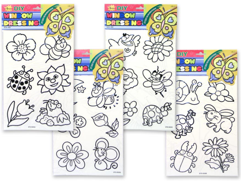Predkreslené kontúry k vyfarbenie farbám na sklo.