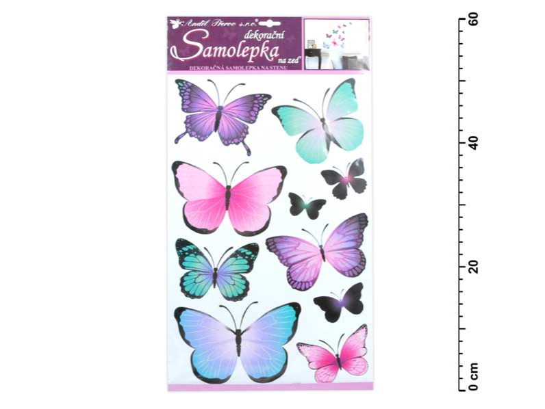 Samolepka na stenu – motýle modrofialové - určené na steny, na dvere, na okno, zrkadlá a iné hladké plochy. Táto samolepka na stenu v okamihu oživí vašu obývačku, kúpeľňu, chodbu, detskú izbu či spálňu. NÁVOD: Opatrne oddeľte samolepku z podkladového materiálu a umiestnite ho na zvolenú suchú, čistú a rovnú plochu. Samolepku vyhlaďte od stredu k okrajom. Uvedená cena je za 1 balenie, v ktorom je 10 farebných motýľov.