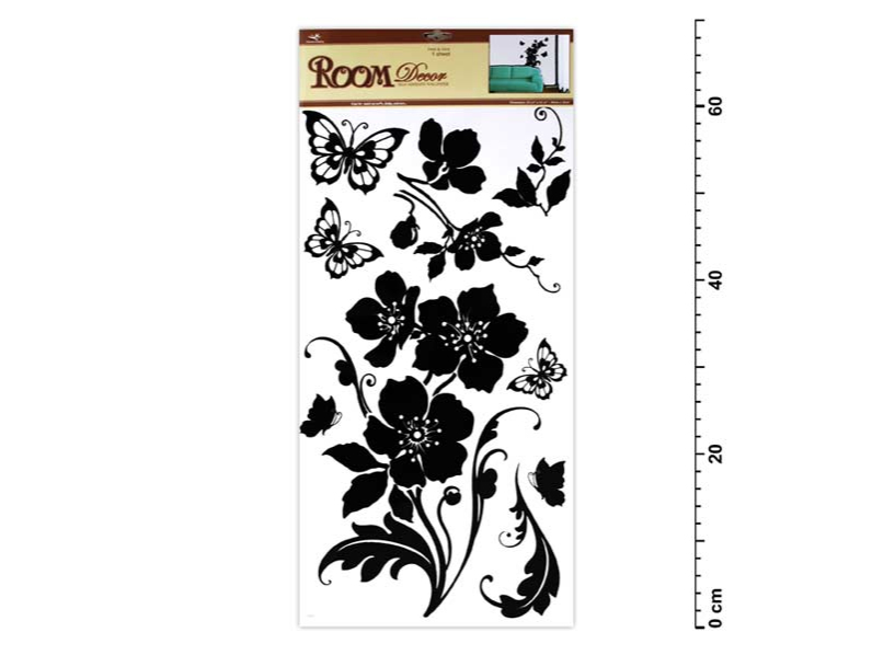 Izbová samolepiaca dekorácia čierna, kvet s motýľmi na steny, dvere, okná, zrkadlá a iné hladké plochy. Táto samolepka na stenu v okamihu oživí Vašu obývačku, kúpeľňu, chodbu, detskú izbu či spálňu. NÁVOD: 1. Opatrne odoberte samolepku z podkladového papiera a umiestnite ju na zvolenú suchú, čistú a rovnú plochu. 2. Samolepku vyhlaďte od stredu ku krajom tak aby pod ňou nezostali žiadne vzduchové bubliny. Uvedená cena je za 1 hárok.