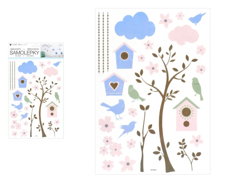 Izbová samolepiaca dekorácia strom a búdky. Vhodná na stenu, na dvere, okná, zrkadlá a iné hladké plochy. Táto samolepka oživí vašu obývačku, kúpeľňu, chodbu, detskú izbu či spálňu. NÁVOD: 1. Opatrne oddeľte samolepku z podkladového papiera a umiestnite ju na zvolenú suchú, čistú a rovnú plochu. 2. Samolepku vyhlaďte od stredu ku krajom, aby pod ňou nezostali vzduchové bubliny. Uvedená cena je za 1 hárok.