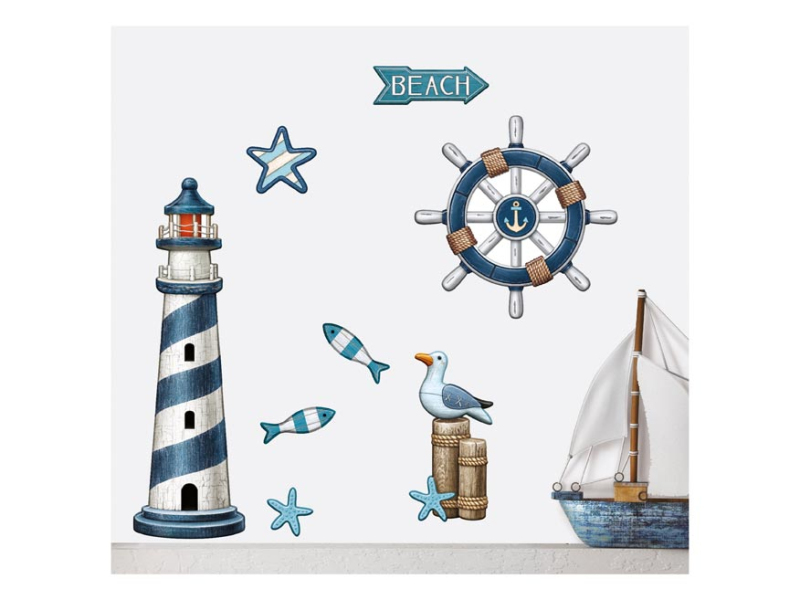 Samolepiaca plastická dekorácia kormidlo. Samolepky sú vhodné na steny, zrkadlá, kachličky a iné hladké plochy. NÁVOD: 1. Opatrne odoberte samolepku z podkladového papiera a umiestnite ju na zvolenú suchú a čistú plochu. Uvedená cena je za 1 hárok.