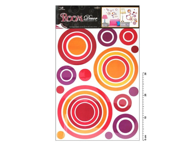 Samolepiaca dekorácia ružové kruhy na steny, dvere, okná, zrkadlá a iné hladké plochy. Táto samolepka na stenu v okamihu oživí vašu obývačku, kúpeľňu, chodbu, detskú izbu či spálňu. NÁVOD: 1. Opatrne odstráňte samolepku z podkladového papiera a umiestnite ju na zvolenú, čistú a suchú rovnú plochu. 2. Samolepku vyhľaďte od stredu k okrajom tak, aby pod ňou neostali žiadne vzduchové bubliny. Uvedená cena je za 1 hárok.