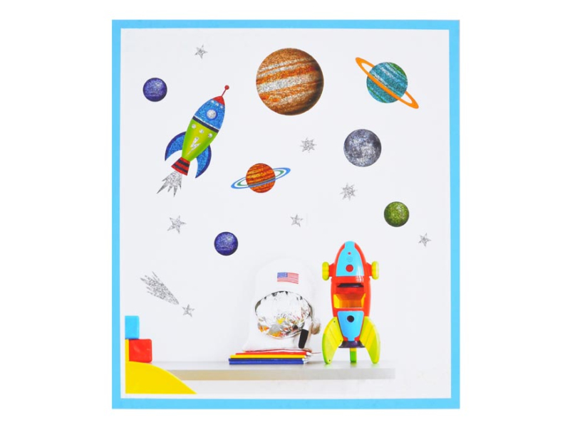 Samolepiaca dekorácia hologramové rakety. Samolepky sú vhodné na steny, dvere, okná, zrkadlá a iné hladké plochy. Táto samolepka na stenu v okamihu oživí Vašu obývačku, kúpeľňu, chodbu, detskú izbu či spálňu. NÁVOD: 1. Opatrne odstráňte samolepku z podkladového papiera. 2. Umiestnite ju na zvolenú suchú a čistú plochu. 3. Vyhlaďte ju od stredu k okrajom. Uvedená cena je za 1 hárok.