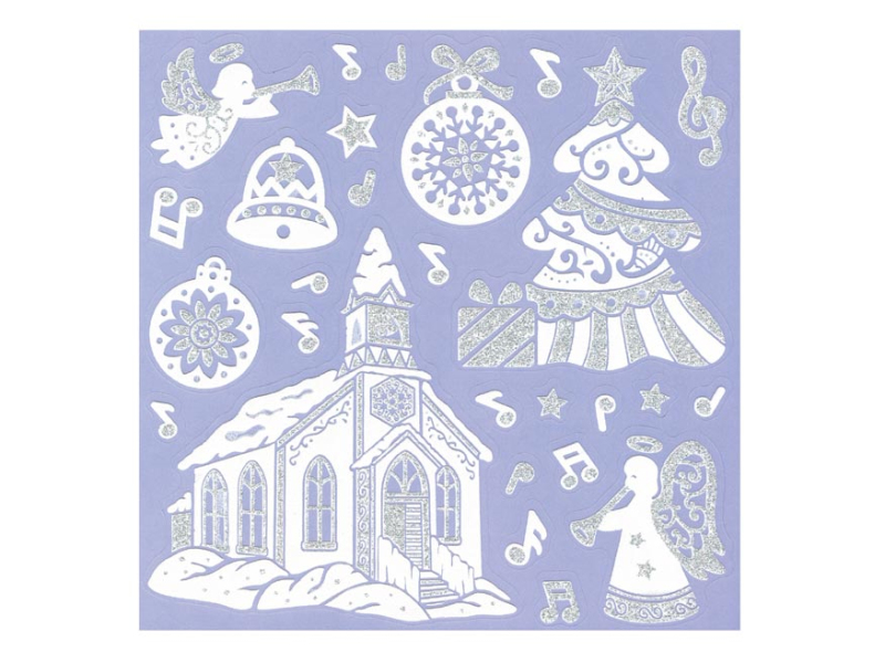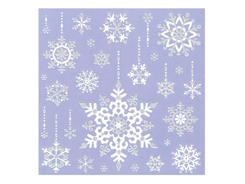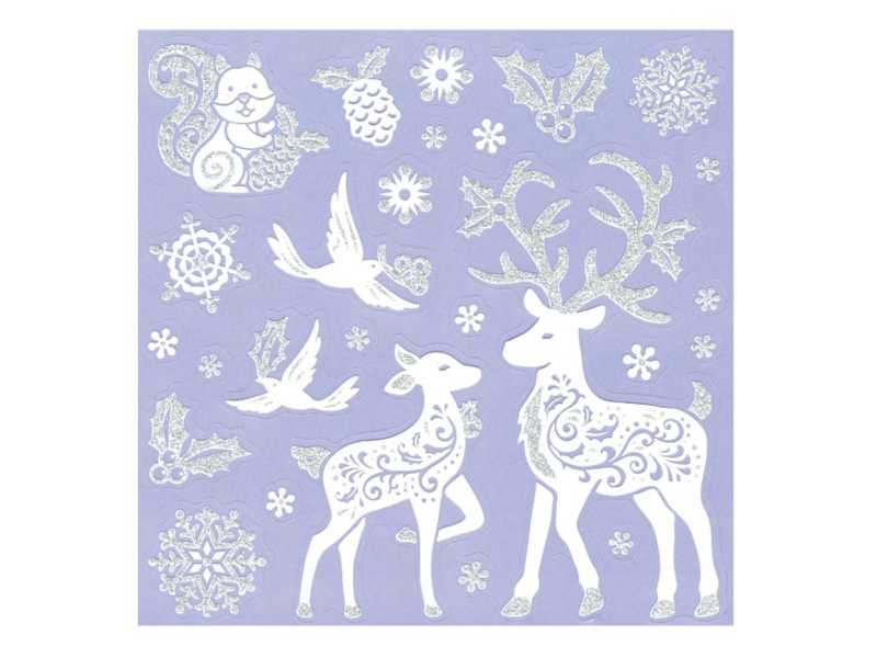 Vianočné samolepky so striebornými trblietkami. Dekoračné samolepky vhodné na zdobenie darčekov, pohľadníc, okien, zrkadiel atď. Vytvoria čarovnú vianočnú atmosféru. Rozmer: 180 x 180 mm Farba: strieborná s trblietkami Dodávame v mixe po 4 kusoch podľa skladových zásob. Uvedená cena je za 1 hárok.