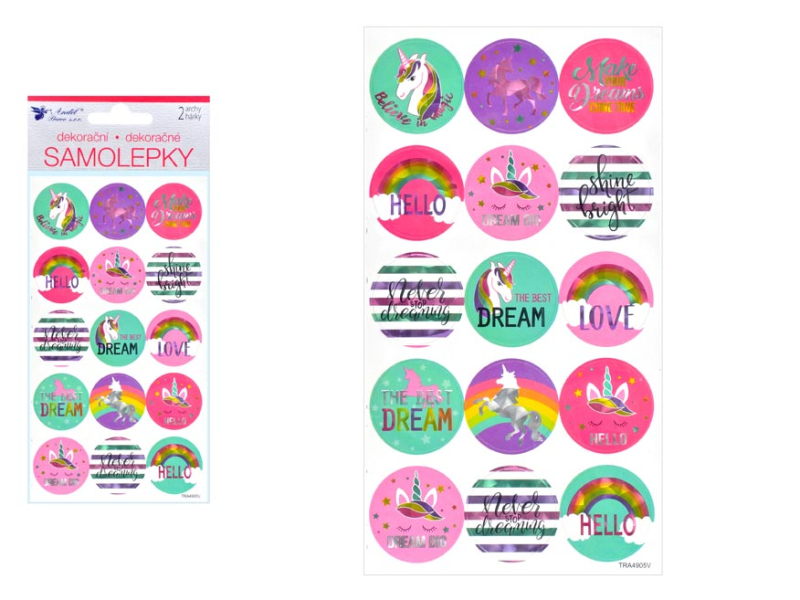 Samolepky pre dievku – kolieska s nápismi – vhodné ako dekorácia do zošita, bloku. NÁVOD: 1. Odlepte nálepku z podkladu a zvoľte vhodné miesto na nalepenie. 2. Lepkavú stranu pritlačte k povrchu, ktorý je pevný, hladký, čistý a rovný. 3. Po nalepení dôkladne vyhlaďte, tým odstránite prípadné vzduchové medzery. UPOZORNENIE: NIE JE TO HRAČKA! Obal odstráňte z dosahu detí. Používajte pod dohľadom dospelej osoby. Uvedená cena je za 1 ks, v ktorom sú 2 hárky. Na 1 hárku je 15 samolepiek.