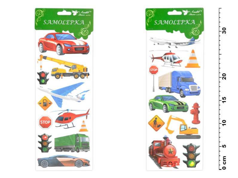Samolepky s obrázkami dopravných prostriedkov. Vyzdobte si diár týmito krásnymi samolepkami. NÁVOD: Jednoducho prilepíme na akúkoľvek hladkú plochu a ozdobíme čokoľvek. Napr. darček, obálku, želanie, zošit, mobil, zrkadlo a i. Uvedená cena je za 1 hárček. Dodávame v mixe po 2 ks podľa skladových zásob.