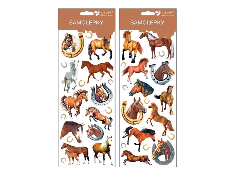 Samolepky kone. Rozmer: 120 x 300 mm Dodávame v mixe 2 ks podľa skladovej zásoby. Uvedená cena je za 1 hárok.