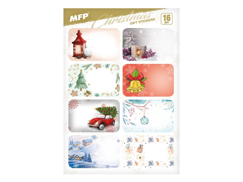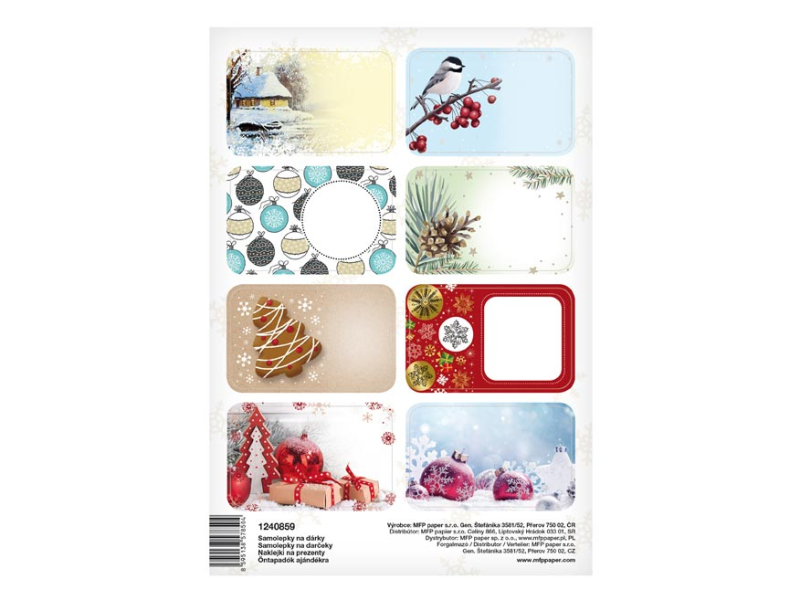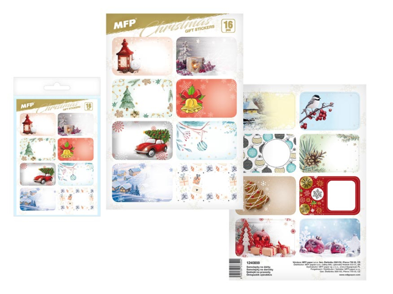 Samolepky na vianočné darčeky – každý darček musí byť podpísaný. BALENIE OBSAHUJE: - 16 ks samolepiek (dva hárky A5) na každom hárku je 8 samolepiek Uvedená cena je za 1 balenie. Všetko je balené vo vrecúšku s eurozávesom.