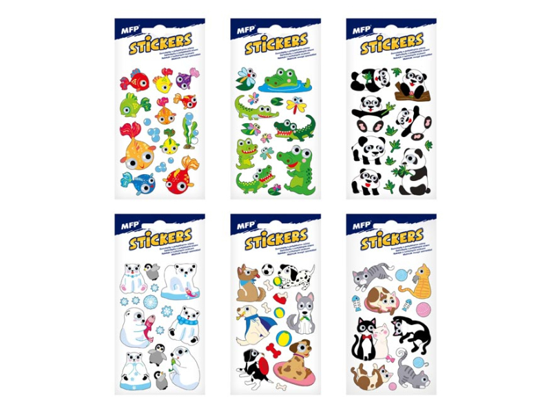 Nálepky s obrázkami zvierat. Okrem toho majú tieto úžasné samolepky pohyblivé oči. Vhodné ako dekorácia do zošita, poznámkového bloku alebo na pohľadnice. Ozdobte si týmito krásnymi samolepkami, ktoré vynikajú svojou farebnosťou, čokoľvek vás napadne. Motívy: ryby, krokodíly, pandy, ľadové medvede, psy, mačky Návod: Jednoducho nalepte na akýkoľvek hladký povrch a ozdobte čokoľvek, napr. darček, obálku, blahoželanie, zápisník, mobilný telefón, zrkadlo atď. UPOZORNENIE: Nie je to hračka, odstráňte obal mimo dosahu detí. Používajte pod dohľadom dospelej osoby. Dodáva sa v mixe 6 kusov podľa skladových zásob. Uvedená cena je za 1 hárok.