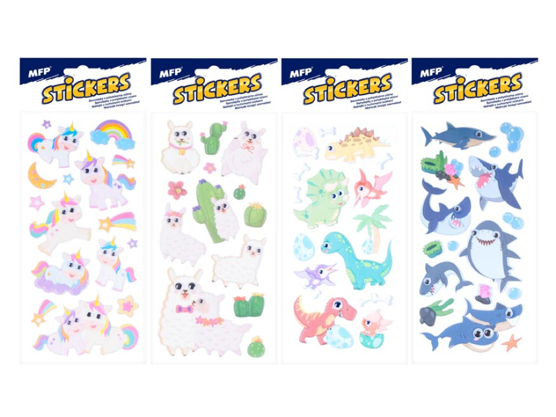 Samolepky s obrázkami jednorožcov, lám, dinosaurov a žralokov. Tieto úžasné samolepky majú navyše pohyblivé oči. Vhodné ako dekorácia do zošita, poznámkového bloku alebo na pohľadnice. Týmito krásnymi samolepkami, ktoré vynikajú svojou farebnosťou, môžete ozdobiť čokoľvek, čo vás napadne, napríklad darček, obálku, pohľadnicu, zápisník, mobil, zrkadlo atď. Motív: jednorožci, lamy, dinosaury, žraloky Návod: Jednoducho nalepte na akýkoľvek hladký povrch. UPOZORNENIE: Nie je to hračka, odstráňte obal z dosahu detí. Používajte pod dohľadom dospelej osoby. Dodáva sa v mixe 4 kusov podľa skladových zásob. Uvedená cena je za 1 balenie.