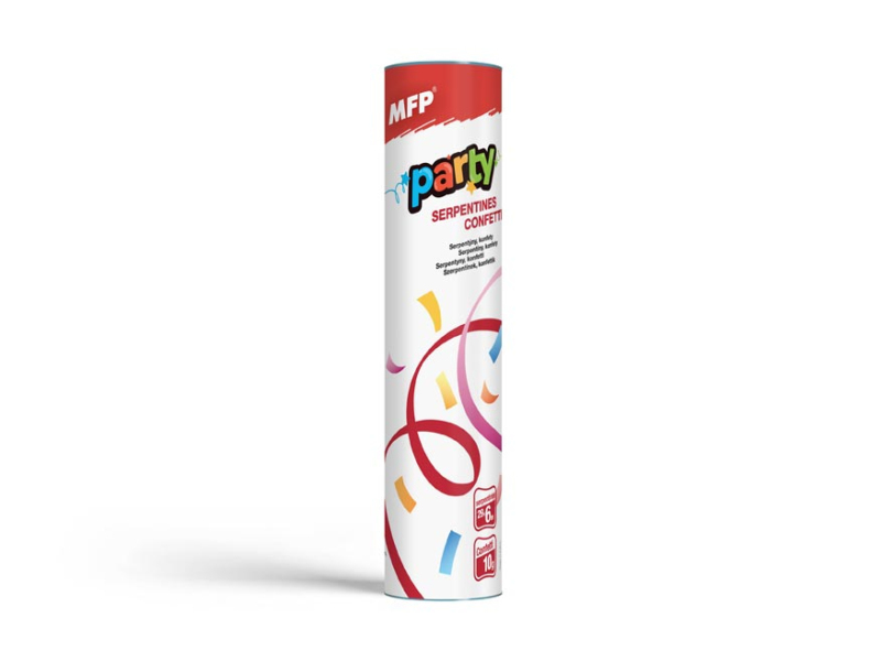 Tuba so serpentínami a konfetami na ručné použitie. Bez struny či stlačeného vzduchu. 29 kusov 6 m dlhých papierových serpentín z jednej strany tuby a 10 gramov papierových konfiet z druhej strany. Návod na použitie: Na jednej strane (podľa toho či chcete použiť serpentíny alebo konfety) roztrhnite a odstráňte papierový uzáver tubusu. Potom tubus chyťte za druhý koniec tak, aby sa Vám obsah nevysypal. Potom švihnite tubusom nad hlavou smerom, ktorým chcete, aby vyletel obsah tubusu. To isté opakujte na druhej strane tubusu.