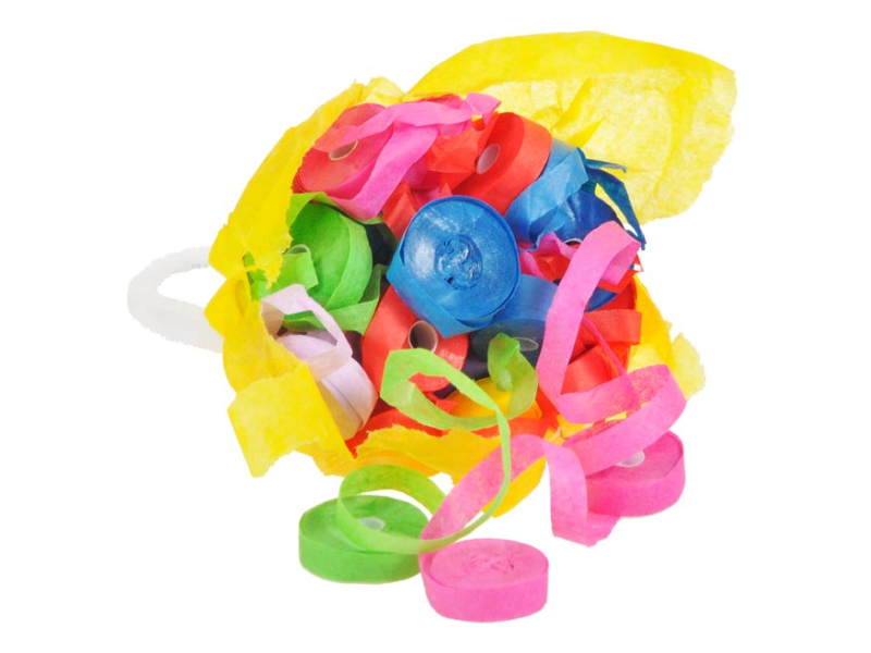 Vrecko s papierovými serpentínami na hádzanie rukou. 29 kusov 6 m dlhých papierových serpentín. Návod na použitie: 1. Natiahnite si vrecko na prostredník tak, aby ste ho mali vo svojej dlani. 2. Potom vrecko opatrne roztrhnite, aby vám jeho obsah zostal v uzatvorenej dlani. 3. Potom odhoďte a serpentíny sa Vám rozvinú smerom hodu. Uvedená cena je za 1 ks.
