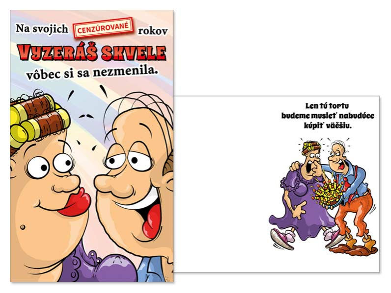 Srdečné blahoželanie k narodeninám. Potešte oslávenca a spolu s darčekom mu venujte originálne a krásne prianie, ktoré mu bude pripomínať túto radostnú udalosť. Text na prednej strane: Na svojich (cenzúrované) rokov vypadáš skvele, vôbec si sa nezmenila. Text vo vnútri blahoželania: Len tú tortu budeme musieť nabudúce kúpiť väčšiu. Rozmery: 114 x 190 mm Papier: pohľadnicový kartón 240 g Želanie ja balené vo vrecúšku, súčasťou balenia je listová obálka. Uvedená cena je za 1 ks.