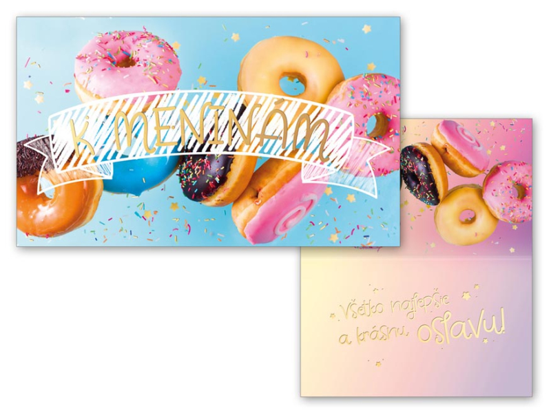 Srdečné blahoželanie k meninám. Potešte oslávenca a venujte mu srdečné želanie k meninám! Text na prednej strane: K meninám Text vo vnútri: Všetko najlepšie a krásnu oslavu! Papier: pohľadnicový kartón 240 g Uvedená cena je za 1 ks.