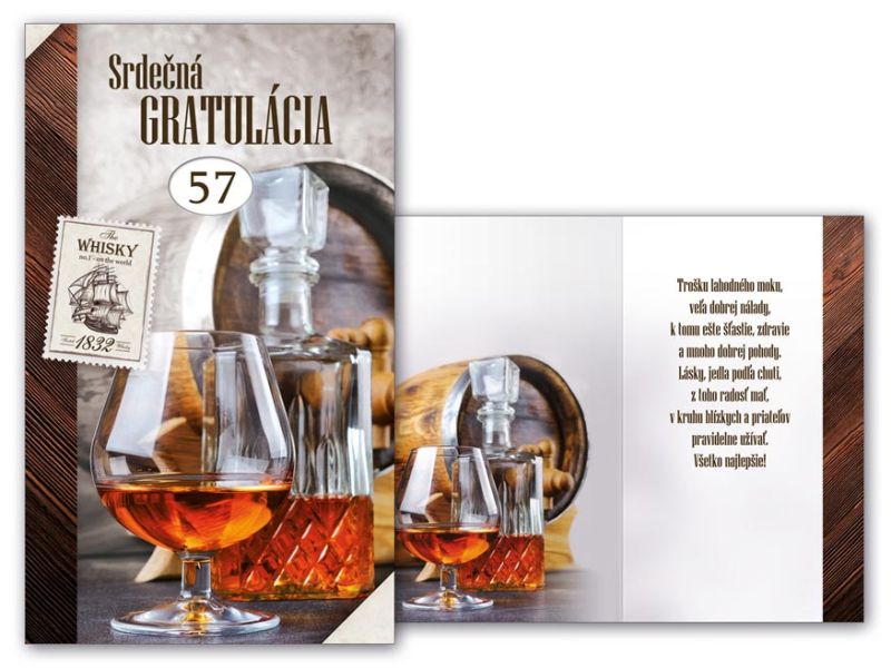 Blahoželanie k narodeninám otočné s textom. Nezabudnite si k darčeku k narodeninám zakúpiť aj pekné blahoželanie. Tým určite urobíte veľkú radosť oslávencovi. Vďaka dvom otočným kolieskam môžete na prianie nastaviť požadovaný vek od 10 do 99 rokov. Text na prednej strane blahoželania: Srdečná gratulácia Text vo vnútri blahoželania: Trošku lahodného moku, veľa dobrej nálady, k tomu ešte šťastie, zdravie a veľa dobrej pohody. Lásky, jedla - podľa chuti, z toho radosť mať, v kruhu blízkych priateľov neustále užívať. Všetko najlepšie! Papier: pohľadnicový kartón 240 g Blahoželanie je v obale, súčasťou balenia je aj listová obálka. Uvedená cena je za 1 ks.