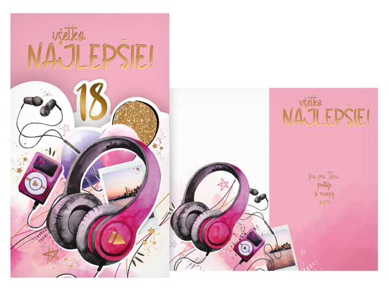 Blahoželanie k narodeninám otočné. Blahoželanie je s obrázkom slúchadiel a MP3 prehrávača. Vďaka otočnému koliesku môžete na prianie nastaviť požadovaný vek od 15 do 20 rokov. Oslavy narodenín patria k výnimočným a príjemným okamihom v živote. Potešte oslávenca a spolu s darčekom mu venujte originálne a krásne prianie, ktoré mu bude pripomínať túto radostnú udalosť. Text na prednej strane blahoželania: Všetko NAJLEPŠIE! Text vo vnútri blahoželania: Iba pre Teba, pretože si naozaj super. Papier: pohľadnicový kartón 240 g Blahoželanie je v obale, súčasťou balenia je aj listová obálka. Uvedená cena je za 1 ks.