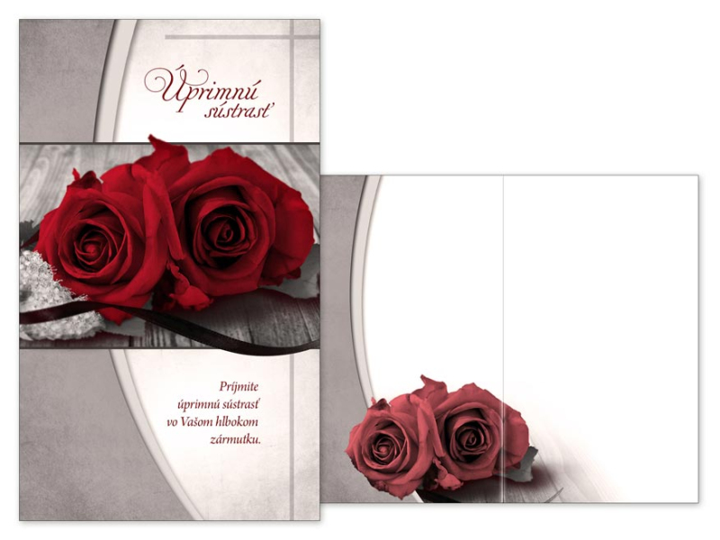 Kondolenčný prejav bez textu s obrázkom ruží. Úmrtie blízkej osoby je vždy tragická udalosť. Vyjadrite kondolenciou úprimnú sústrasť a súcit pozostalým. Kondolenčný prejav a smútočné kvetiny vám zaistia dôstojné rozlúčenie s vašim blízkym človekom. Text na prednej strane blahoželania: Úprimnú sústrasť Prijmite úprimnú sústrasť vo Vašom hlbokom zármutku. Text vo vnútri blahoželania: Bez textu Papier: pohľadnicový kartón 240 g Prejav je balený v obale, súčasťou balenia je aj listová obálka. Uvedená cena je za 1 ks.