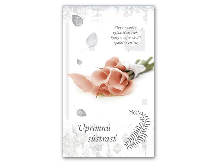 Vyjadrenie sústrasti, kondolencie s textom. Úmrtie blízkej osoby je vždy tragická udalosť. Vyjadrite kondolenciou úprimnú sústrasť a súcit pozostalým. Kondolenčný prejav a smútočné kvetiny vám zaistia dôstojné rozlúčenie s vaším blízkym človekom. Text na prednej strane: Úpromnú sústrasť Slová nemôžu vyjadriť smútok, ktorý v tejto chvíli spoločne cítime. Text vo vnútri blahoželania: Často neľahká je pre nás rozlúčka s tími, ktorých milujeme. Rozmery: 94 x 155 mm Papier: pohľadnicový kartón 240 g Želanie ja balené vo vrecúšku, súčasťou balenia je listová obálka. Uvedená cena je za 1 ks.