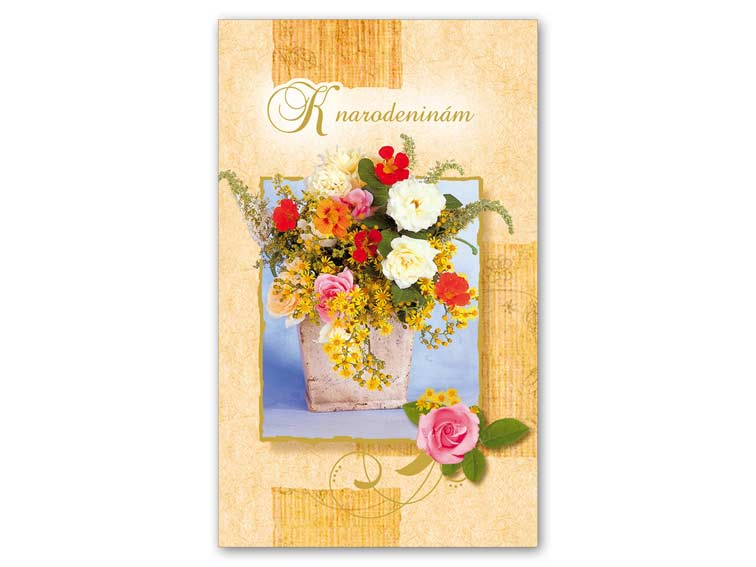 Srdečné blahoželanie k narodeninám. Potešte oslávenca a spolu s darčekom mu venujte originálne a krásne prianie, ktoré mu bude pripomínať túto radostnú udalosť. Text na prednej strane: K narodeninám Text vo vnútri blahoželania: Iba radosť zo života, stále dobrú náladu, užívať si pevné zdravie a v srdci mať vždy pohodu želá Rozmery: 94 x 155 mm Papier: pohľadnicový kartón 240 g Želanie ja balené vo vrecúšku, súčasťou balenia je listová obálka. Uvedená cena je za 1 ks.