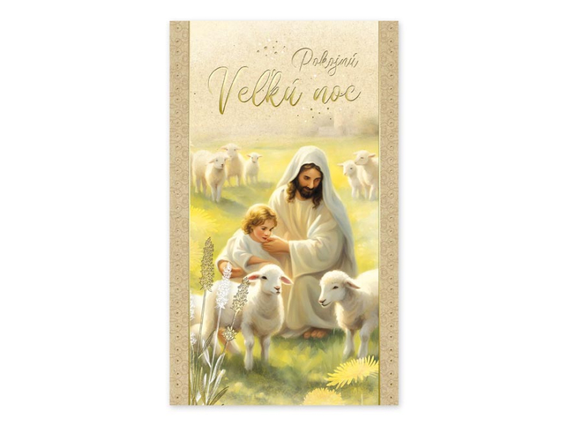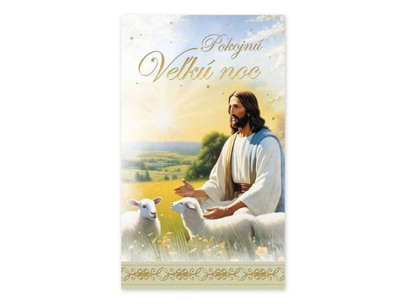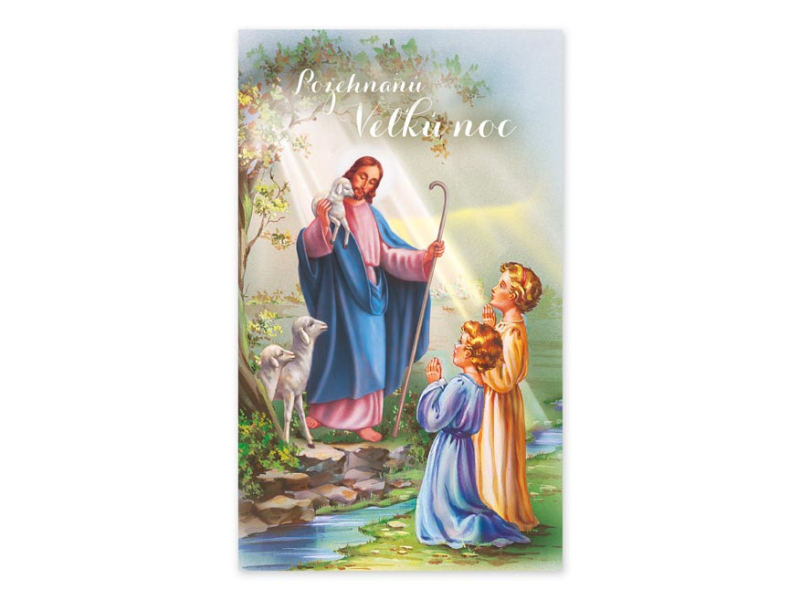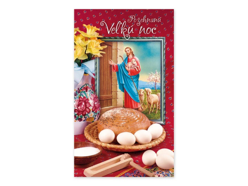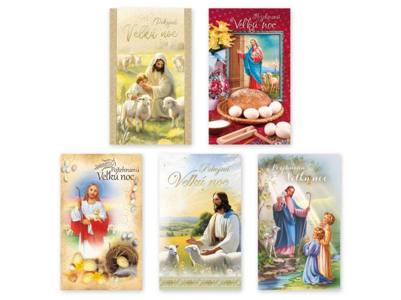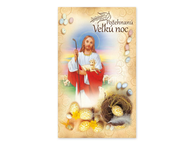 Blahoželanie veľká noc náboženské s textem. Potešte svojich blízkych vkusným prianiam a poprajte im krásne sviatky jari. Text na prednej strane pohľadnice: Požahnanú Veľkú noc, Požehnané Vel'konočné sviatky, Požahnanú Veľkú noc, Požahnanú Veľkú noc, Požahnanú Veľkú noc, Požahnanú Veľkú noc, Požehnané Vel'konočné sviatky Text vo vnútri: Bez textu Papier: pohľadnicový kartón 240 g Pohľadnica je balená vo vrecúšku, súčasťou je i listová obálka. Dodávame v miixe 6 ks podľa skladových zásob. Uvedená cena je za 1 ks.