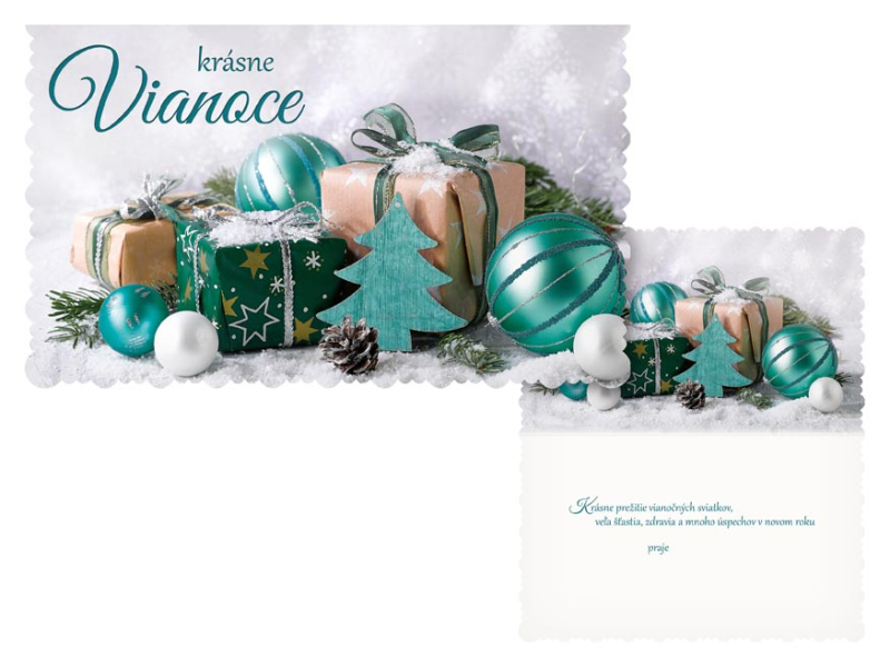 Vianočné blahoželanie s textom. Nezabudnite poslať krásne Vianočné prianie Vašim známym. Určite ich poteší to, že ste si na ne spomenuli. Text na prednej strane: Krásne Vianoce Text vo vnútri priania: Krásne prežitie vianočných sviatkov, veľa šťastia, zdravia a mnoho úspechov v novom roku praje Papier: pohľadnicový kartón Prianie je balené v sáčku, súčasťou balenia je aj listová obálka. Uvedená cena je za 1 ks.