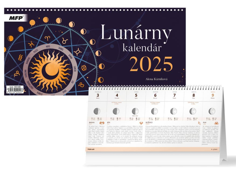 Stolový kalendár na rok 2025 s názvom Lunárny. Vhodný pre zapisovanie dôležitých poznámok, k organizovaniu rôznych udalostí každodenného života. Osahuje okrem rád na každý deň podľa postavenia Mesiaca vo zverokruhu i užitočný prehľad dianí na oblohe roku 2024. Možnosť dotlače firemného loga a textu na spodnú stranu kalendára. TYP KALENDÁRA: stolový – lunárny KALENDÁR OBSAHUJE: - prehľad roku 2025, 2026 - plánovací kalendár roku 2025 - meniny - štátne sviatky - fáza mesiaca, názov aktuálneho mesiaca - počet týždňov - znamenia horoskopu na každý deň - zaznačenie splnu - životné citáty Väzba: dvojitá špirál Kalendárium: týždenný Rozmer: 300 x 145 mm Uvedená cena je za 1 ks.