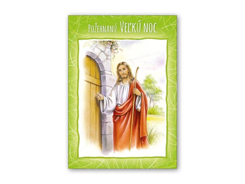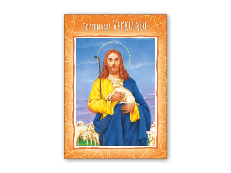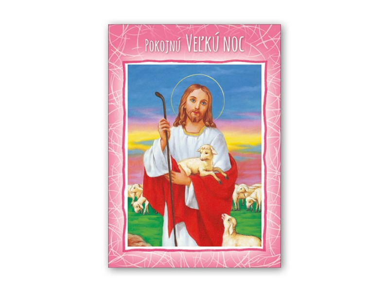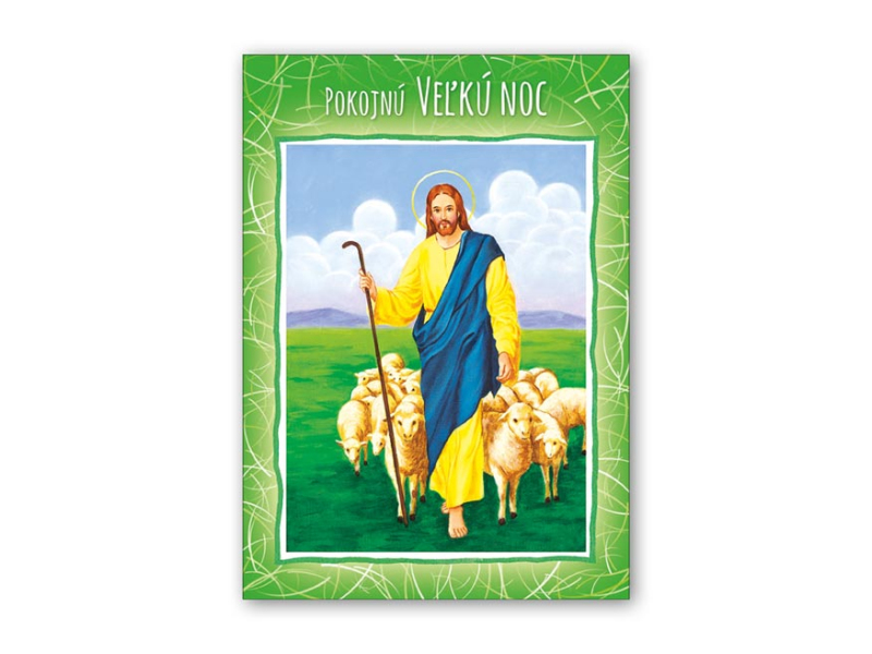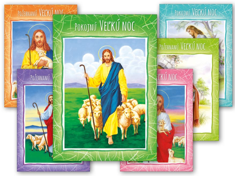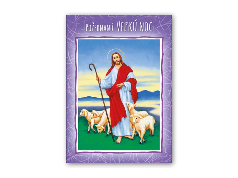 Pohľadnica s veľkonočným motívom. Text obsahuje 6 pohľadníc zo 6. Text na prednej strane: Pokojnú Veľkú noc, Požehnanú Veľkú noc Povrchová úprava: UV lak Papier: pohľadnicový kartón 240 g Text: 6/6 Dodávame v mixe podľa skladových zásob. Uvdená cena je za 1 ks.