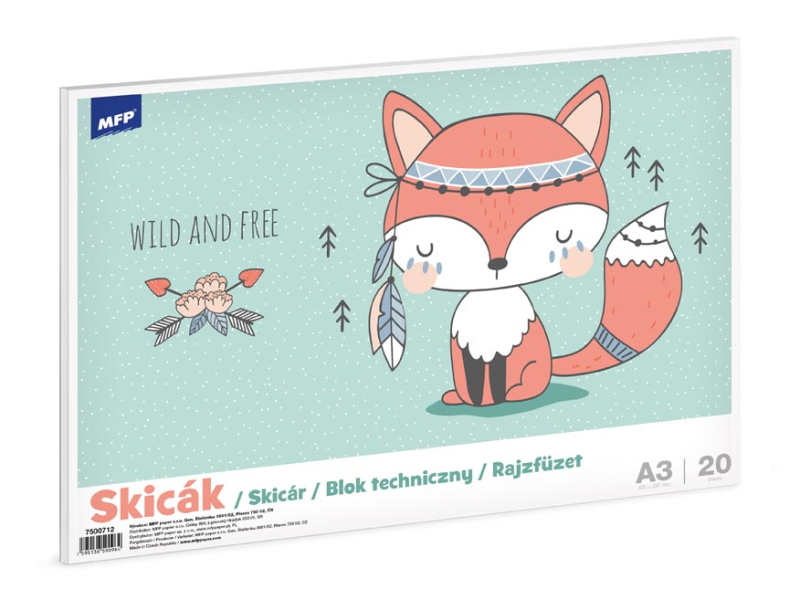 Skicár je trhací zošit alebo blok s čistými bielymi listami. Urobte si pohodovú chvíľku s deťmi a nakreslite si nejaký pekný obrázok do skicáku. Máme pre Vás širokú škálu poznámkových blokov, trhacích blokov, záznamových kníh, a to dokonca v rôznych veľkostiach. Nezabudnite si u nás zakúpiť aj voskovky, vodové farby a štetce alebo pastelky. POUŽITIE: na maľovanie ako ceruzkou, pastelkami, uhlom, vodovými i temperovými farbami Titulná strana je opatrená 4 motívmi (futbal, smajlíci, mačiatko, jednorožec) Formát: A3 Gramáž: 190 g Počet listov: 20 listov Dodávame v mixe po 4 ks podľa skladovej zásoby. Uvedená cena je za 1 ks.