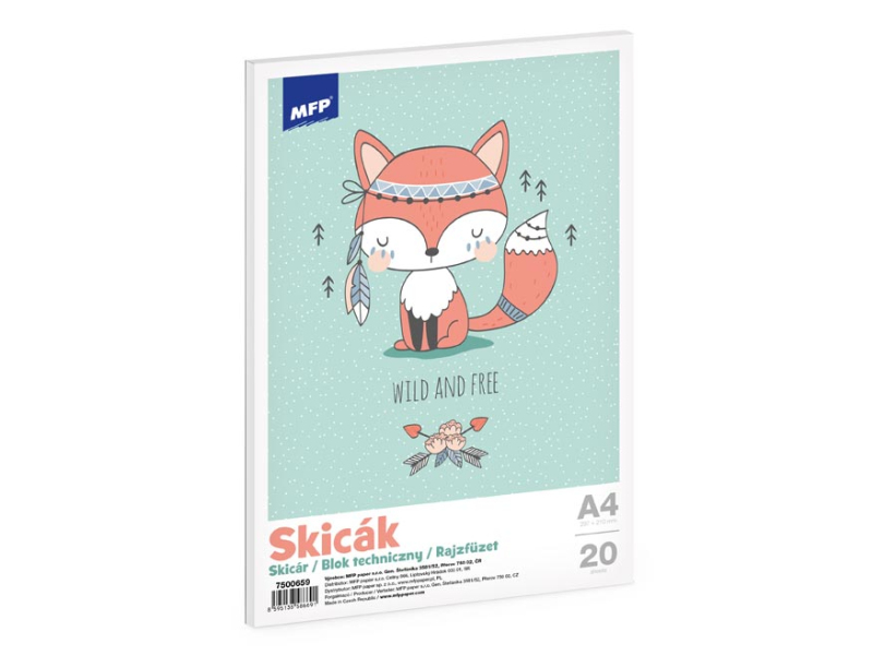 Skicár je trhací zošit alebo blok s čistými bielymi listami. Urobte si pohodovú chvíľku s deťmi a nakreslite si nejaký pekný obrázok do skicáku. Máme pre Vás širokú škálu poznámkových blokov, trhacích blokov, záznamových kníh, a to dokonca v rôznych veľkostiach. Nezabudnite si u nás zakúpiť aj voskovky, vodové farby a štetce alebo pastelky. POUŽITIE: na maľovanie ako ceruzkou, pastelkami, uhlom, vodovými i temperovými farbami Titulná strana je opatrená 4 motívmi (úsmev, kôň, mačiatko, auto) Formát: A4 Gramáž: 170 g Počet listov: 20 listov Dodávame v mixe po 4 ks podľa skladovej zásoby. Uvedená cena je za 1 ks.