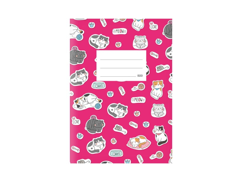 Školský linajkový zošit vo formáte A5, tmavoružovej farby, s motívmi mačiek, v originálnych doskách s matným laminom a lokálnym UV lakom. Stránky sú bez okrajov. Typ: 523 Formát: A5 Motív: mačky Farba: sýta ružová Šírka riadku: 12 mm Počet listov: 20 s linkou Gramáž listu papiera: 80 g Dosky: matný kriedový papier 300 g Uvedená cena je za 1 ks. Viete, čo znamená číselné označenie na zošitoch?