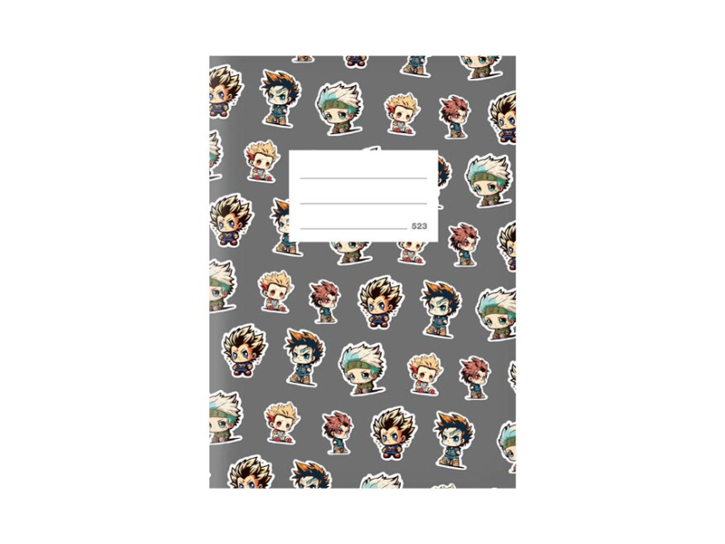 Školský linajkový zošit vo formáte A5, tmavosivej farby, s motívmi anime maskotov, v originálnych doskách s matným laminom a lokálnym UV lakom. Stránky sú bez okrajov. Typ: 523 Formát: A5 Farba: tmavo šedá Šírka riadku: 12 mm Motív: anime maskoti Počet listov: 20 s linkou Gramáž listu papiera: 80 g Dosky: matný kriedový papier 300 g Uvedená cena je za 1 ks. Viete, čo znamená číselné označenie na zošitoch?