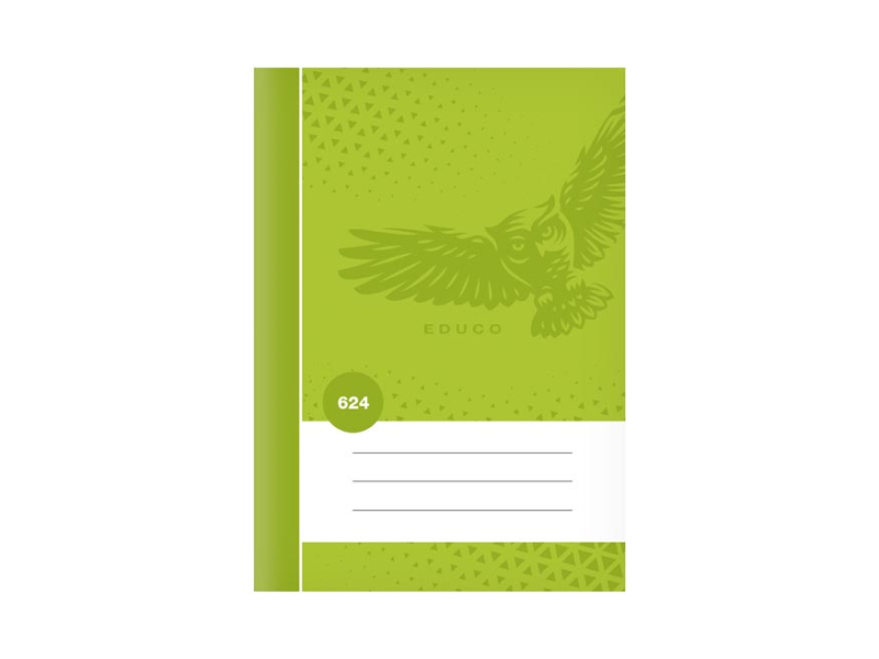 Školský linajkový zošit vo formáte A6, v zelenej farbe, s motívom sovy, v doskách z kriedového papiera. Kvalitne spracovaný „zošit“ je vhodný najmä pre deti na 1. stupni, ale je vhodný na poznámky prakticky pre každého žiaka. Typ: 624 Formát: A6 Motív: sova Farba: zelená Šírka riadku: 8 mm Počet listov: 20 s linkou Gramáž listu papiera: 60 g Dosky: matný kriedový papier 200 g Uvedená cena je za 1 ks. Viete, čo znamená číselné označenie na zošitoch?