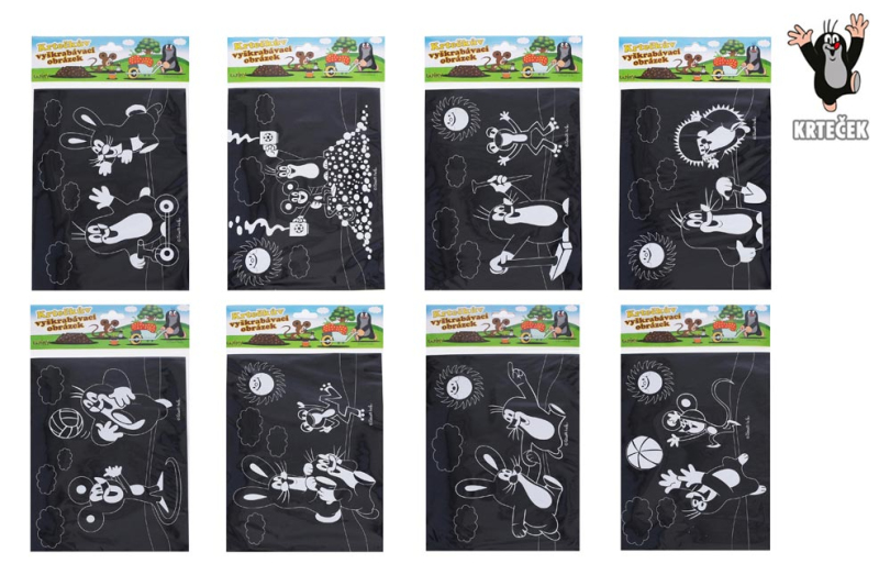 Vyškrabávací obrázok Krtko. Doprajte si chvíľku odpočinku a kreatívne sa vydávajte na vyškrabávacom notese. Dieťa si zlepší motoriku ruky a naučí sa kresliť. VAROVANIE: Nevhodné pre deti do 3 rokov. Obsah malých častí - hrozí nebezpečenstvo udusenia. Uvedená cena je za 1 balenie.