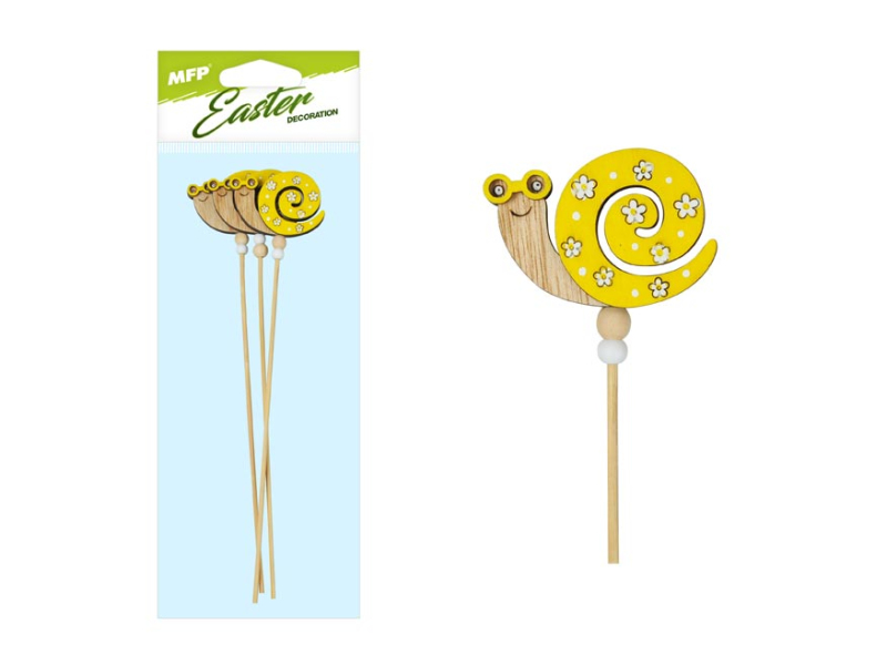 Drevená veľkonočná dekorácia veselého slimáka. Farebný slimák je ideálnym doplnkom do vašich jarných škatúľ. Balenie obsahuje: - 3 ks Veľkosť: 28 cm Uvedená cena je za 1 balenie.