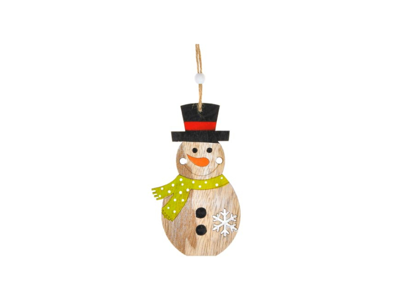 Usmievavý drevený snehuliak so závesom. Vianočná dekorácia nielen do detskej izby.