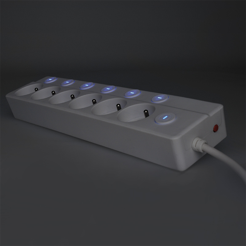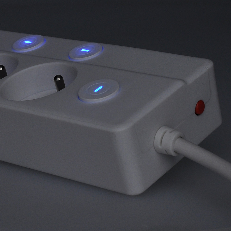 - Predlžovací prívod so samostatnými vypínačmi pre každú zásuvku. Plus centrálny vypínač ovláda všetky zásuvky naraz. Resetovateľný istič pri preťažení zásuvkového poľa preruší napájanie. Potom je možné predlžovací prívod opäť sprevádzkovať.