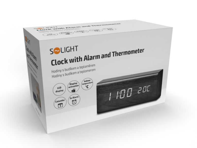 - formát času 12/24, dátum, rok, vnútorná teplota, tri budíky, nastaviteľná intenzita podsvietenia